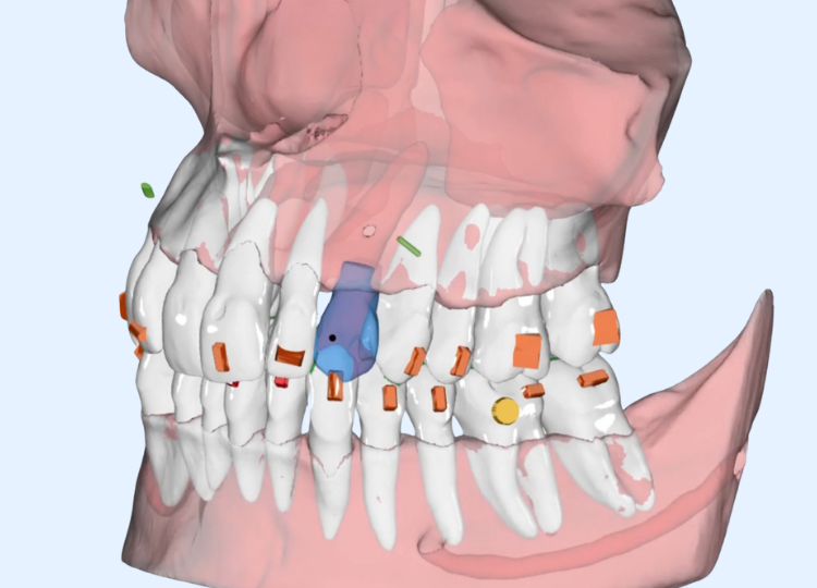 You can also adjust the bone transparency setting to reveal internal structures, which helps in identifying conditions such as impacted canines.